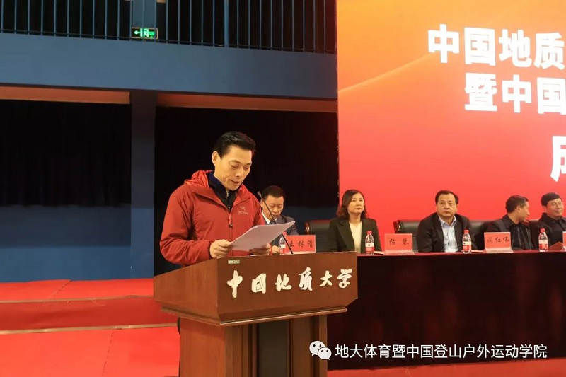 湖北省体育局局长胡功民同志在致辞中表达了对中国地质大学(武汉)成立beat365在线唯一官网登录和中国登山户外运动学院的祝贺,表示学院的成立对湖北省户外运动有着时代性的意义。