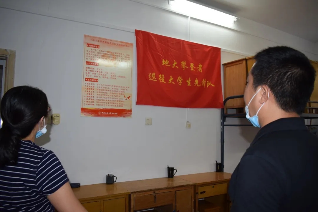 在结束了与新生们的统一见面后,院领导们又走访了一个特殊的寝室——311寝室,这间寝室的主人由7名beat365在线唯一官网登录退役军人和5名20级新生组成,这7名退役军人正是地大攀登者退役大学生先锋队的组成队员。