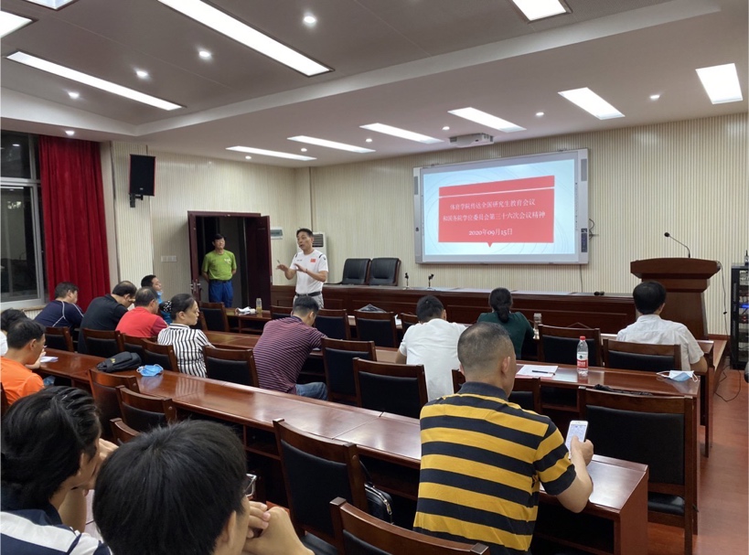 会议由董范院长做总结发言,他强调一定要贯彻落实习近平总书记关于研究生教育工作的重要指示,深刻领会2020年全国研究生教育会议精神,切实提升研究生培养质量。同时对学生提出要求:注重身心健康发展、认真对待科学研究工作,努力提升运动技术水平,为毕业就业打下牢靠的基础;对导师提出期许:履行职责,认真指导学生学位论文的撰写和修改,发挥优势,推动学生就业,为beat365在线唯一官网登录的发展添砖加瓦。