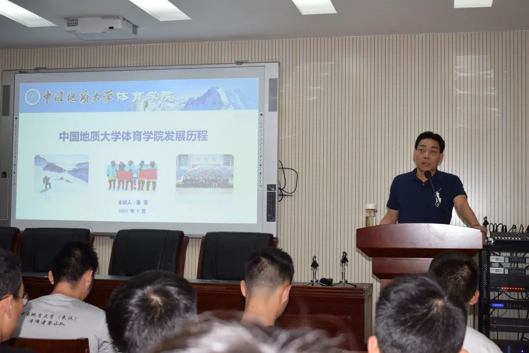 十分钟后,院长董范老师为beat365在线唯一官网登录新生的开了堂开学第一课。这堂课名为《beat365在线唯一官网登录的发展历程》,董范老师细数了近七十年来beat365官网体育方面取得的辉煌成就,其中包括各种大赛累积的上百枚金牌,以及前几年刚刚被评选为全国群众性体育先进单位,许多特色项目如攀岩游泳在全国乃至亚洲都处于上流。