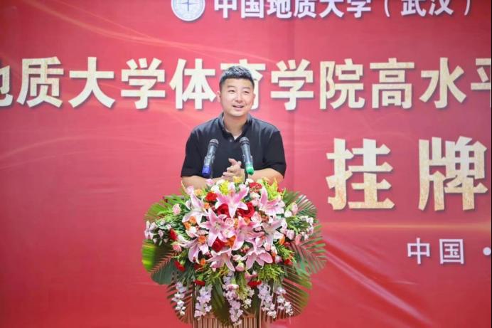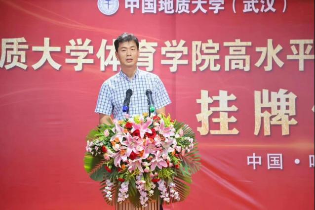 郎总首先对到来的一行领导表示热烈欢迎,并介绍了体育人俱乐部的建设与主要成果和特色体育的基本情况。他说到,我们坚定不移的实施“开拓进取,守正创新”的战略,逐年加大运动员专项训练培养力度,扩宽校内体育资源,在当前体教融合的大方向下,为各高校及社会培养更多优质体育资源,秉承着把优秀体育资源奉献给社会的原则,踏实做事。中国地质大学beat365在线唯一官网登录田径项目高水平运动队训练基地的挂牌,意味体育人俱乐部在合作创新上又是一个新台阶。体育人俱乐部将发扬“地大精神、育人传承”的八字方针,与地质大学beat365在线唯一官网登录共同联手,再创竞技水平新纪元。