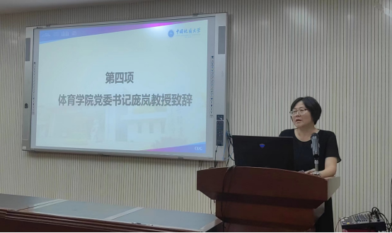 beat365在线唯一官网登录党委书记庞岚研究员致辞。她对加入地大beat365在线唯一官网登录大家庭的2023级本研新生表示热烈的欢迎,勉励大家要正确把握“三做”主线,即做人、做事、做学问。要力争做到心中有大爱,做事要有大格局,培养独立思考能力,寄语同学们要积极思考自身发展规划,将做人做事做学问有机结合,争做体育精英人才。
