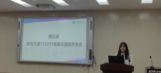 本科新生代表吴方圆同学分享了自己考上大学的历程,表达了对地大beat365在线唯一官网登录的热爱与憧憬,她决心奋发向上,砥砺前行,践行“艰苦朴素,求真务实”校训精神和“扎根中国,胸怀天下,勇攀高峰,追求卓越”的攀登精神,与葳蕤向上的地大共同成长。