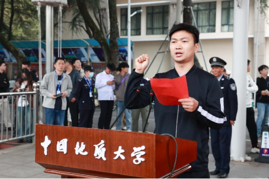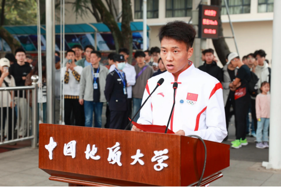 beat365在线唯一官网登录本科生、杭州亚运会男子马拉松冠军何杰代表学生运动员宣誓。