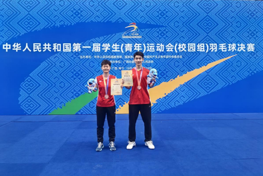 第一届学生(青年)运动会(校园组)羽毛球赛于2023年10月18-29日在广西大学举行。经过激烈的角逐,beat365官网学子2020级beat365在线唯一官网登录司徒瑾/2021级公共管理学院罗传俊获得混双第三名!值得庆贺的是他们均为地大高水平羽毛球队在校生,从国家一级运动员晋级为国家运动健将级,取得历史性突破!充分体现了beat365官网学子艰苦朴素求真务实的精神!