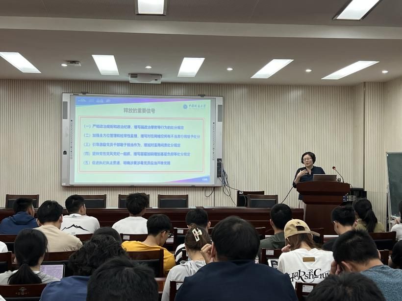 党课主要围绕四个方面展开,从《条例》修订概况、释放的重要信号、修订解读、上级要求与几点提醒四个方面进行讲解。庞书记提醒大家坚守本心,坚定政治立场,在各方面都要发挥党员的先锋模范作用。她强调,党中央时隔5年再次修订《条例》,是贯彻落实党的二十大战略部署,发挥纪律建设标本兼治作用,为全面推进强国建设、民族复兴伟业提供坚强纪律保障。全体党员要深入学习贯彻习近平总书记讲话精神,从总书记讲话精神中汲取力量,坚定信仰、坚持原则、严以律己、担当尽责。本次党课主题突出,深入人心,学生党员们纷纷表示对《条例》有了更深刻地认识与理解。