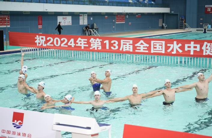 2024年10月19日至20日,国家体育总局主办的第13届全国水中健身操比赛在安徽省马鞍山市奥体中心游泳馆举行。本届赛事设有集体徒手规定动作操、双人棒操、双人打水板操和双人浮力哑铃操等多个项目,共有来自湖南大学、长安大学等18支参赛运动队近300名运动员参赛。