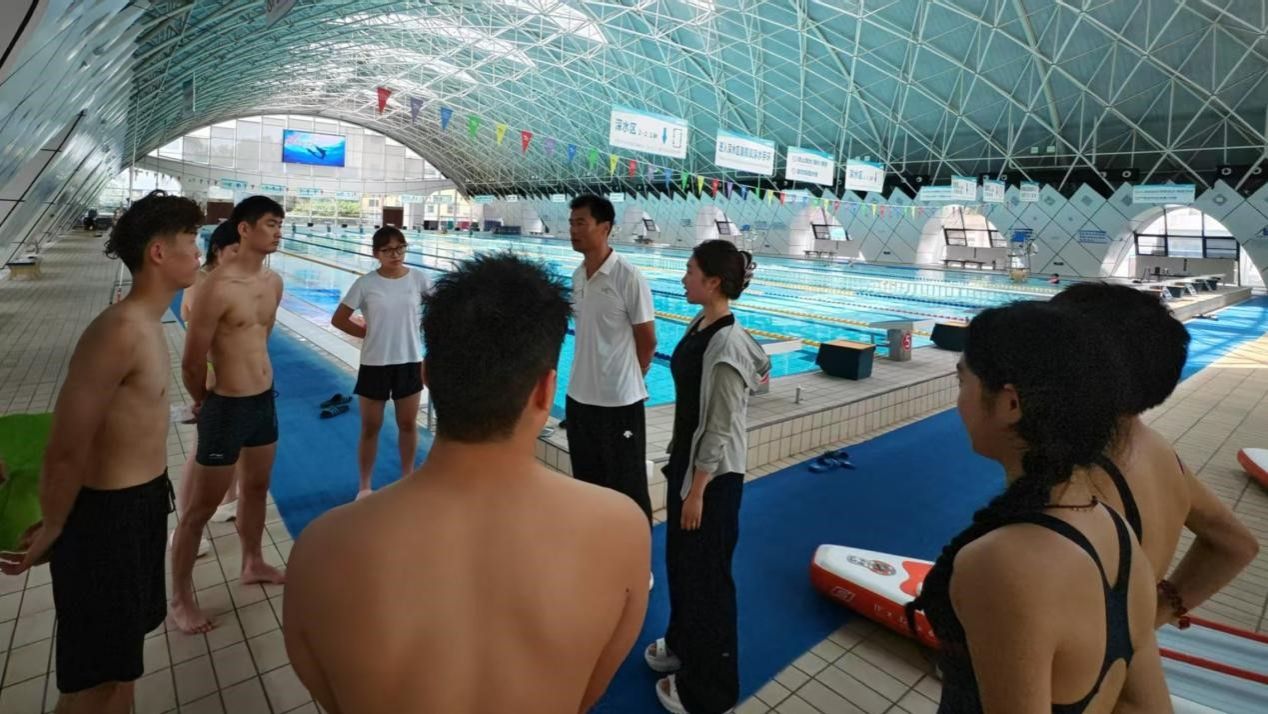 出征前,beat365在线唯一官网登录李伦副院长到游泳馆看望参训队员,强调了校园体育在培养学生团队精神、锤炼意志品质中的重要作用,鼓励参赛队员赛出风格、赛出水平。