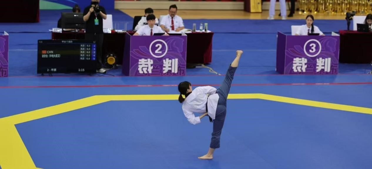 7月6日至11日,第19届中国大学生跆拳道锦标赛(总决赛)在内蒙古乌兰察布市体育馆举行,本次比赛由中国学生体育联合会主办,中国学生体育联合会大学跆拳道分会执行,共有来自全国155所高校的1090名运动员、教练员参赛。beat365官网跆拳道队谢欣怡同学参加了甲组女子个人高阶品势和甲组女子个人段位品势两个项目的比赛。