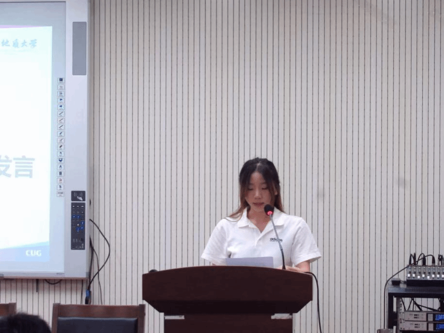 在校生代表陈雅璐同学鼓励新生坚定目标,在大学中不断提升个人素质,实现全面发展。
