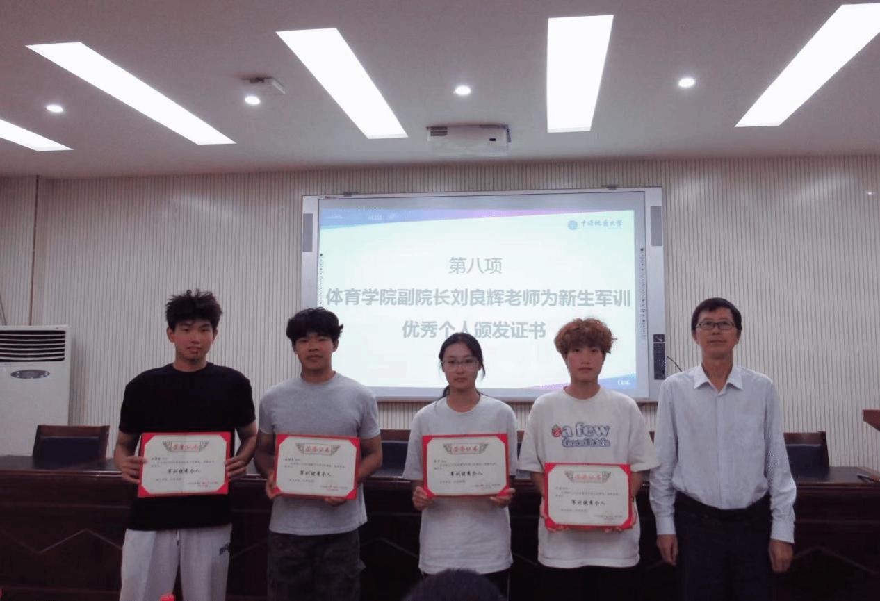 副院长刘良辉为夏奕、叶涵、张简晨、赵梓铖等军训优秀个人颁发证书。