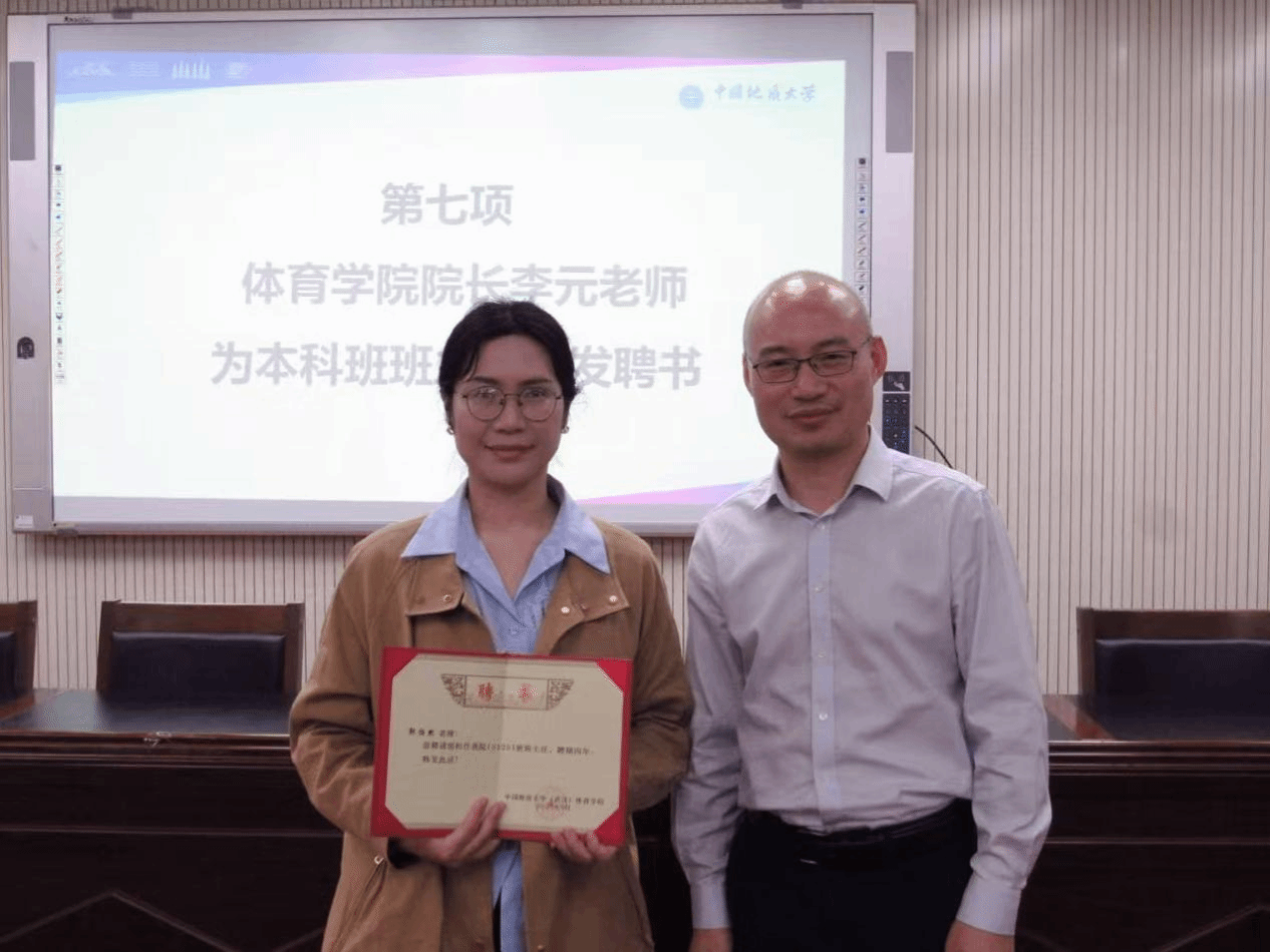 beat365在线唯一官网登录院长李元为本科班班主任郭怡然颁发聘书。