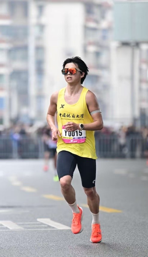 地理与信息工程学院研一学生龚郅敏,平衡科研与运动的双重挑战,在繁重的学术研究之余坚持系统训练,此番赛场之上稳扎稳打,最终以2小时46分13秒的成绩顺利完赛,将地大学子的严谨与拼搏融于每一步奔跑。