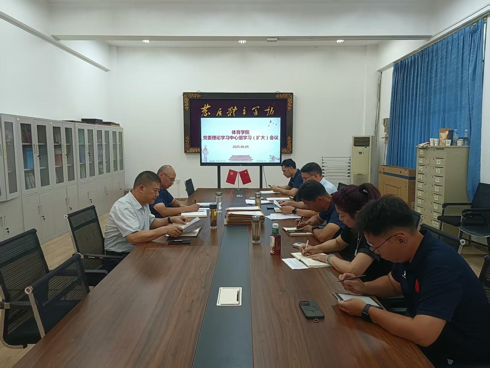 2025 年 6 月 5 日下午 2:30,beat365在线唯一官网登录党委理论学习中心组学习(扩大)会议在体育馆党员之家举行。会议由何建新书记主持,学院党委委员参会,教师党支部书记列席会议。