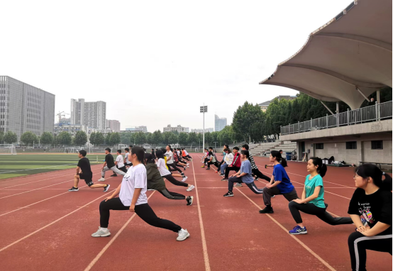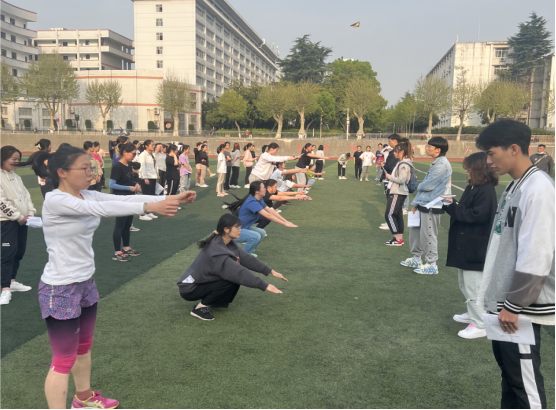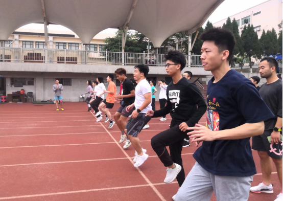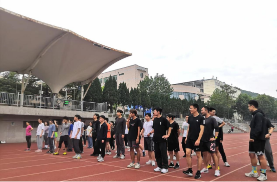 2022年5月11日下午,第二次大学生长江源科考50名队员在西区操场进行第一次日常训练。