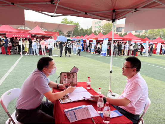 2022年9月25日上午九点,beat365官网第二十八届毕业生供需见面会在西区运动场举行。副校长刘杰带队到beat365在线唯一官网登录走访指导就业工作。党委学生工作部部长邬海峰、学生就业指导处处长严嘉等相关单位负责人参加。
