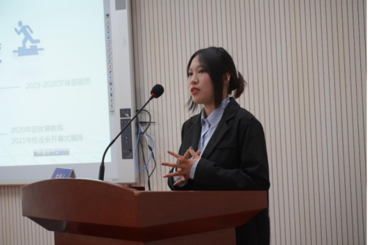 2021届学生会执行主席鞠长江作学生会工作报告。2021届学生会致力于打造“有温度、有高度、有态度”的服务型学生组织,建设一支胸怀理想、心系同学、品学兼优、作风端正的学生骨干队伍。